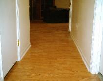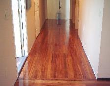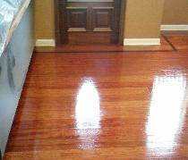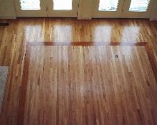 | White Oak with Brazilian Cherry border finished with (3) coats of oil modified semi-gloss (After) |
