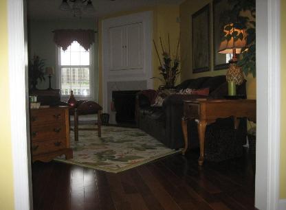 | Wilmington, NC This project consisted of a prefinished installation of a 3/8" engineered hardwood floor over a concrete slab. Carpet was removed from the Foyer, Living Room and Dining Room and sheet vinyl was removed from the Kitchen and Laundry Room. The addition of the hardwood floor has added warmth and elegance to this charming condo and gives the feel of a much larger space. |